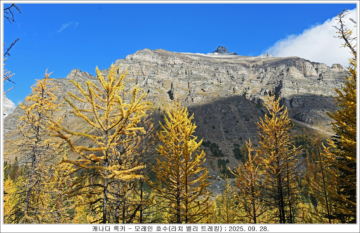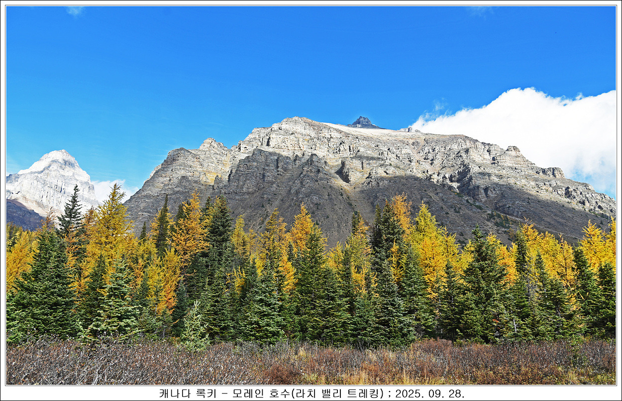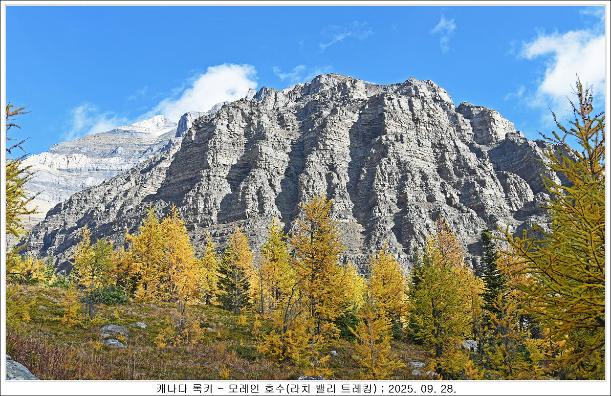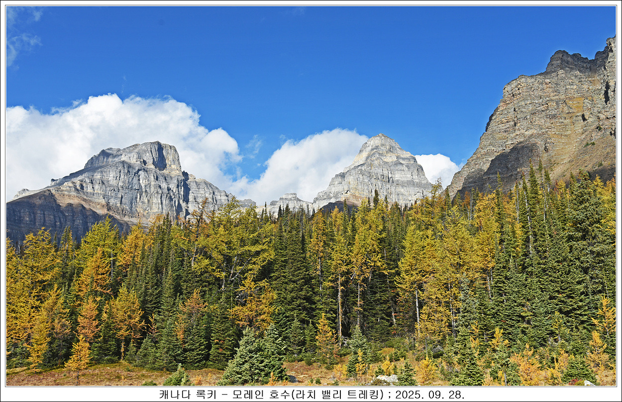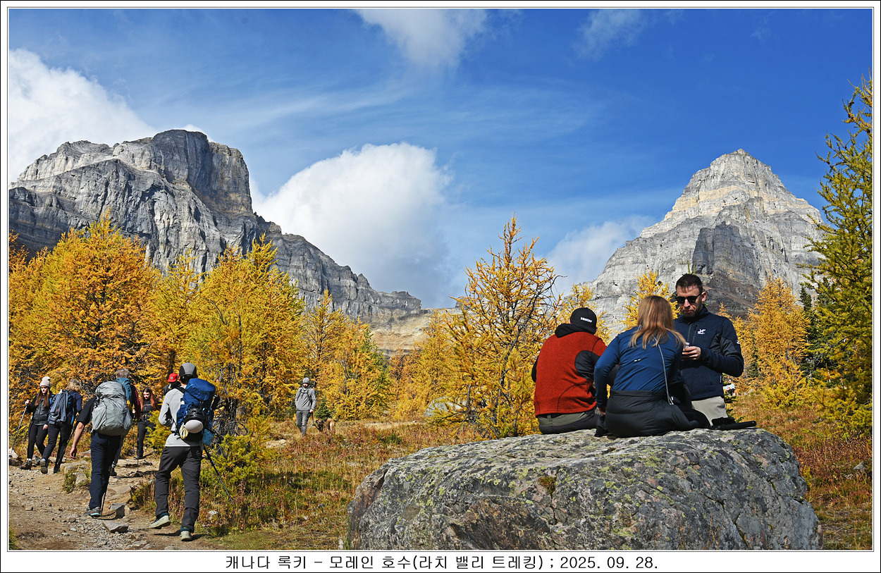 오늘은 모레노 호수와 라치벨리 트레킹입니다, 라치벨리 주변은 낙엽송의 노란 단풍으로 록키는 가을 여행도 괜찮다는 생각이 듭니다