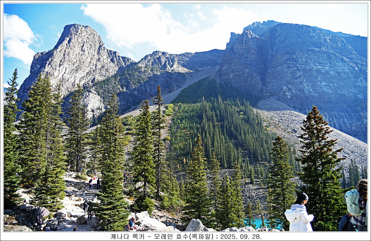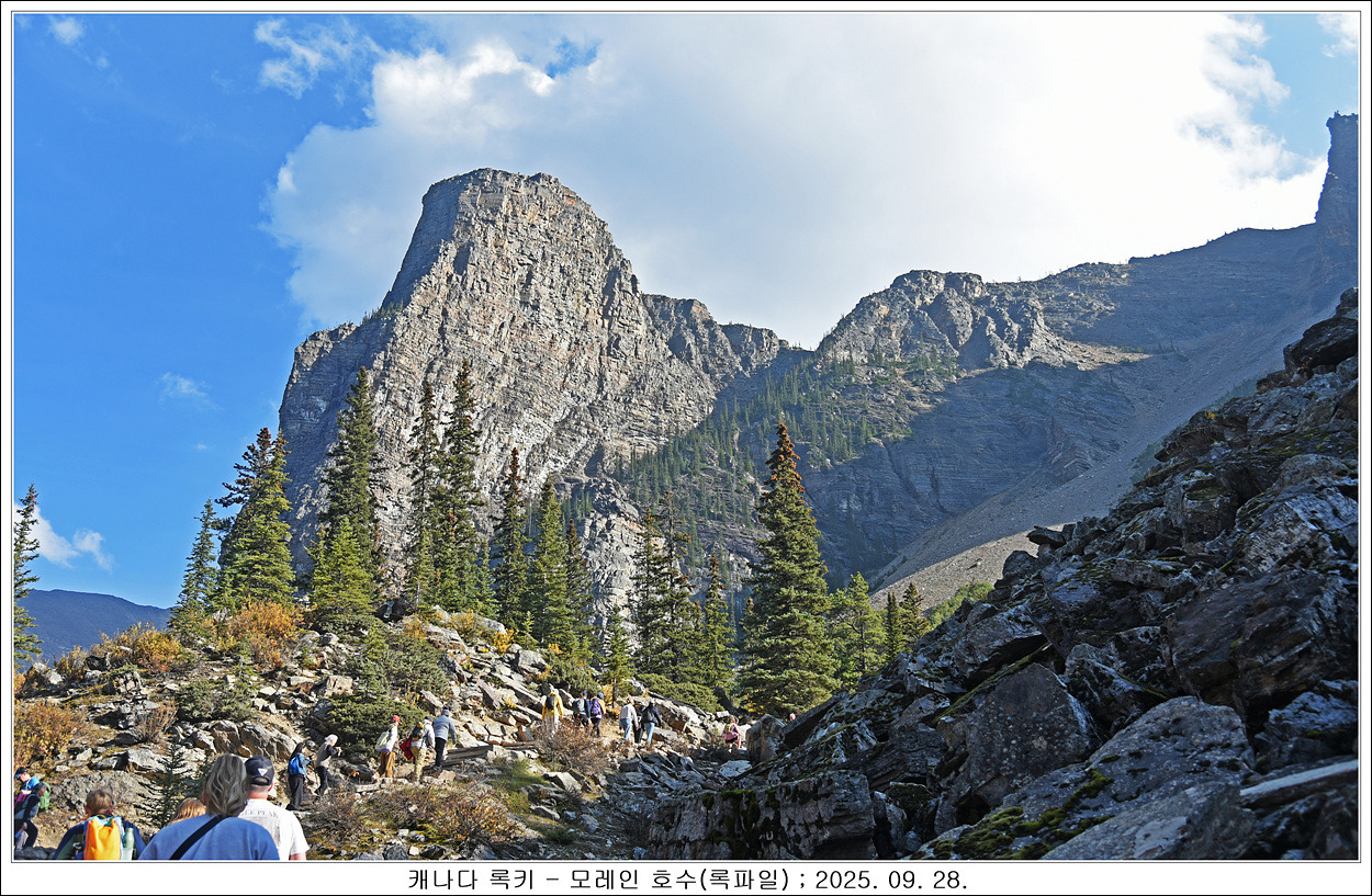 모레인 호수를 둘러보고 록파일로 올라갑니다